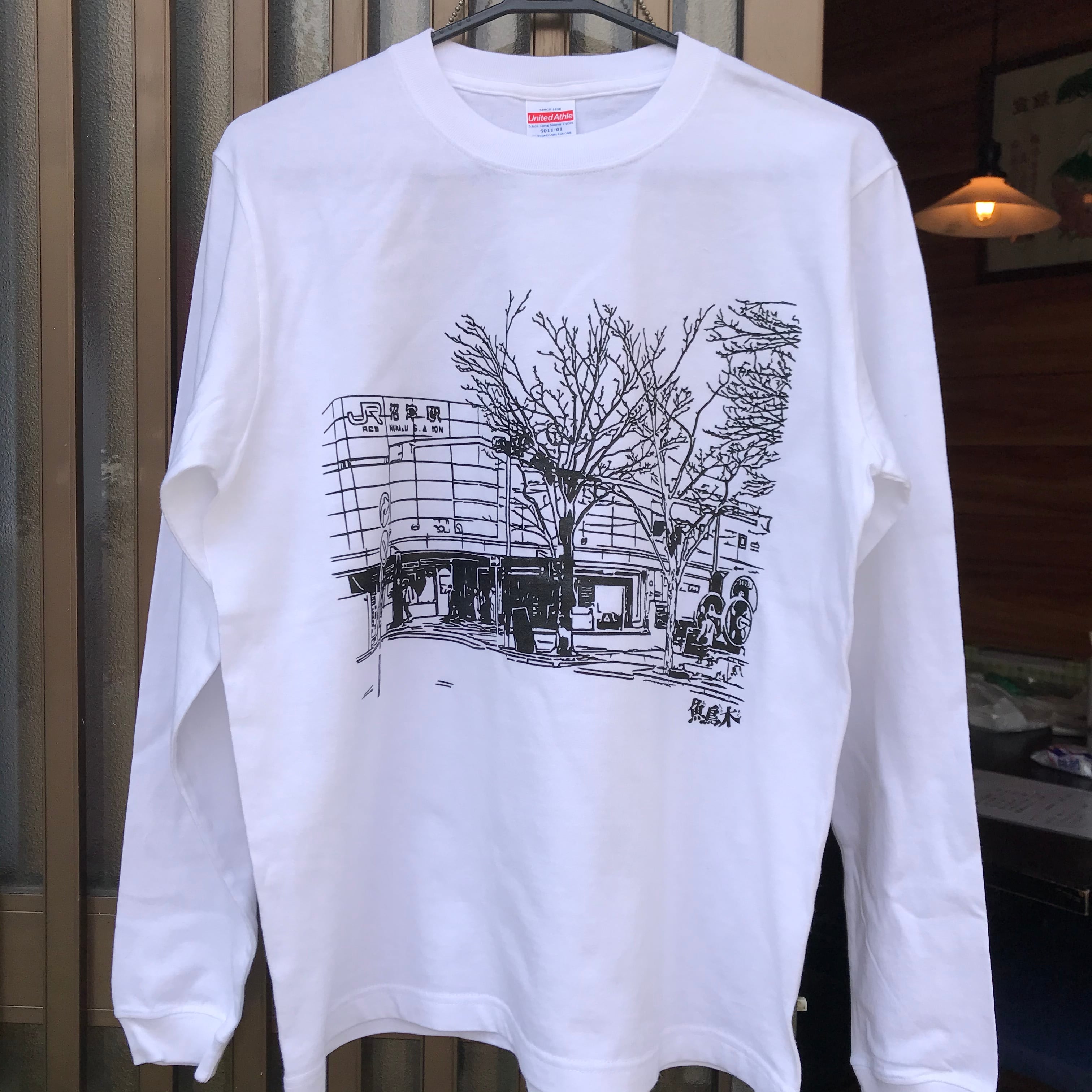 沼津を愛する全ての人へ。 沼津駅南口をモチーフにした魚鳥木オフィシャルTシャツの長袖バージョンです。 カラー:白、グレー、黒 サイズ:S、M、L、XL